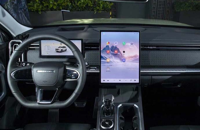 Teknolojioku'dan Ufuk Tufan'ın haberine göre, ilk olarak JAECOO 7'nin iç tasarımına değinmek gerekiyor çünkü modelin iç mekanı oldukça heyecan verici. Aracın içerisinde 14.8 inçlik büyük bir multimedya ekranı bulunuyor. Bu ekran, sürücüye geniş bir bilgi ve eğlence alanı sunarken, 540 derecelik panoramik şasi görüşü ve 360 derece çevre görüntüleme sistemi sayesinde de rahat bir kullanım deneyimi vadediyor. Bu özellik, özellikle park manevraları ve dar alanlarda araç kullanımı sırasında büyük avantaj sağlıyor.