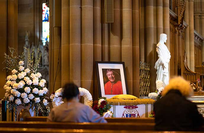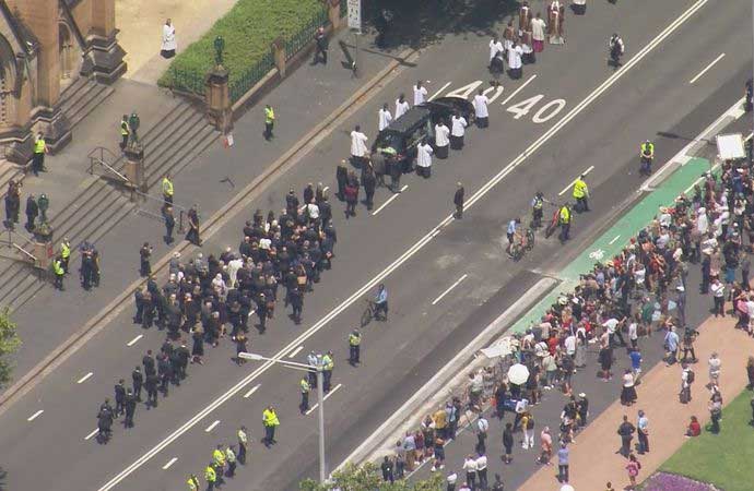 Eski Avustralya başbakanlarından Tony Abbott ve John Howard'ın yanı sıra Avustralya federal muhalefet lideri Peter Dutton ve birçok devlet yetkilisinin de katıldığı cenaze töreni, Sydney Katolik Başpiskoposu Anthony Fisher tarafından yönetildi.