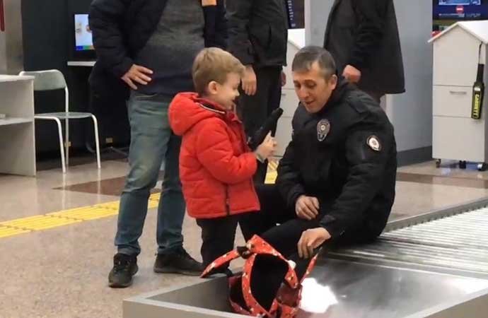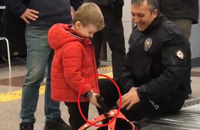 Edinilen bilgiye göre, babaannesi ve dedesini kutsal topraklara Umre yolculuğu için uğurlamaya Yenişehir Havaalanı'na gelen 6 yaşındaki Selim Köse, sırtındaki çantasını X Ray cihazına koyup geçiş yaptı.