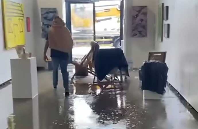 Çatıdan akan sular nedeniyle bazı sanat eserlerinde hasar oluştu. Yetkililerin hemen müdahalesi ile eserler su akan alandan kaldırıldı. Tabandaki su da çekildi. O anlara ait görüntüler sanatseverler tarafından sosyal medyaya paylaşıldı.
