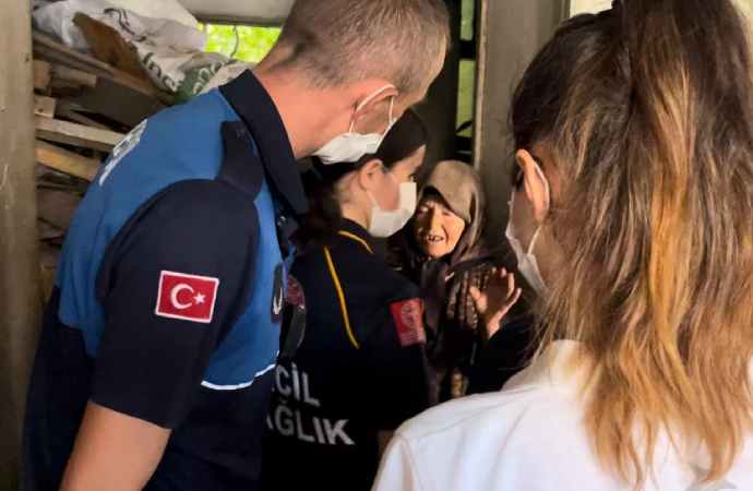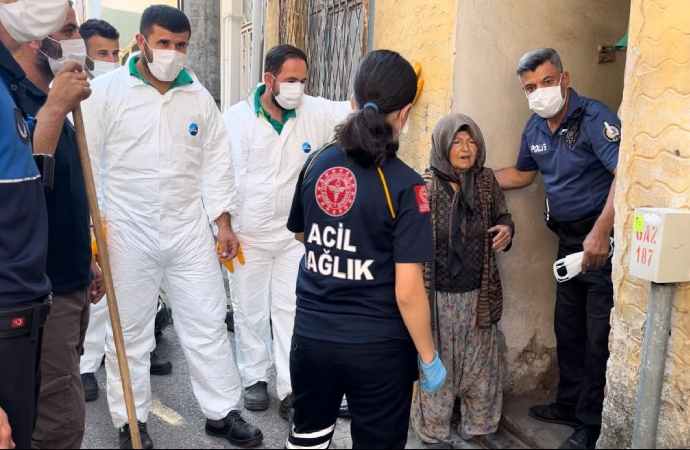 Savcılık kararıyla eve gelen polis, zabıta ve temizlik ekibi yaşlı kadını ikna etmek için dakikalarca dil döktü.