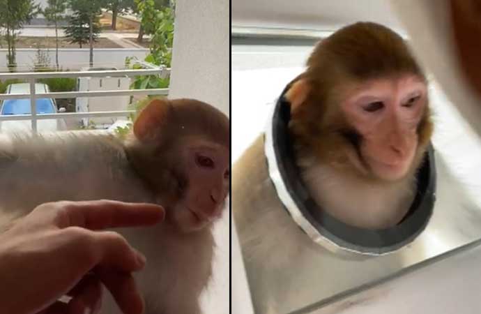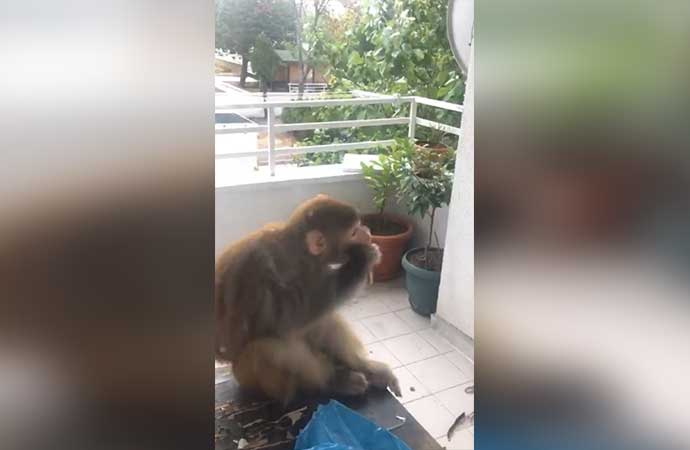 Maymunun bazı evlerin balkonunda görüldüğü görüntüler ortaya çıkarken, hayvanın kaçak yollarla Türkiye'ye getirilmiş olabileceği ihtimali üzerinde duruluyor.