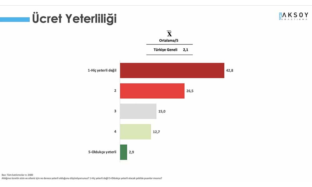 "Aldığınız ücretin sizin ve aileniz için ne derece yeterli olduğunu düşünüyorsunuz?" sorusuna %69,3 "yeterli değil" yanıtını verdi.