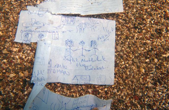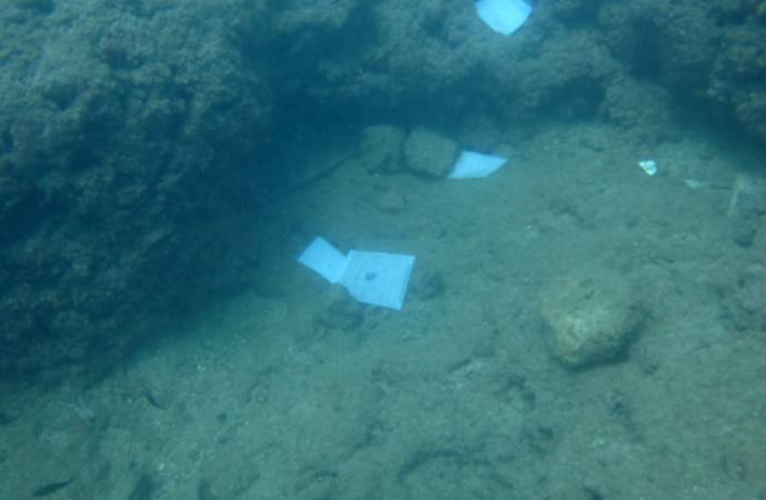 Kağıt ve plastik poşetlerin deniz dibinde kirliliğe yol açtığı görülürken, dalgıç grubu dipte kırık şişeler ve arızalı elektronik aletlere de rastladıklarını söyledi.