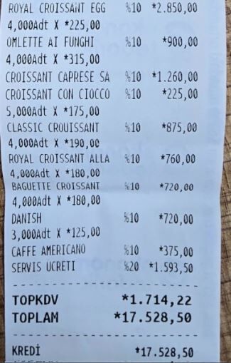 İtalyan şefin restoranında 7 kişinin kahvaltıya 17 bin 528 lira ödediği hesaba yapılan yorumların bir kısmı şöyle oldu: "Çok ucuz hayatta gitmem", 7 kişinin bu kadar yiyebilmesi normalse hesap da normal", "Gayet normal fiyatlar", "Asgari ücretin biraz üstünde",
