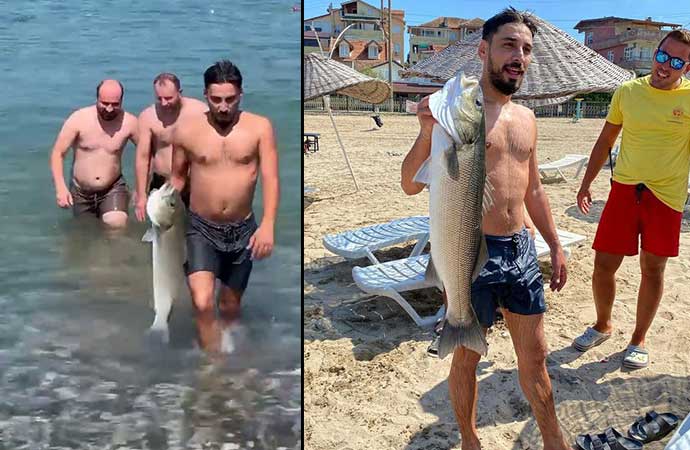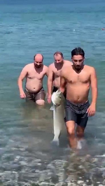 Bir süre takip ettiği balığı eliyle yakalayan vatandaş, sahile çıkıp yakaladığı balıkla poz verdi. Vatandaşın balığı sudan çıkartması ise cep telefonu kamerasına yansıdı.
