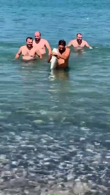 Burada serinlemek için suya giren vatandaş, yanında levrek balığını yüzdüğünü gördü