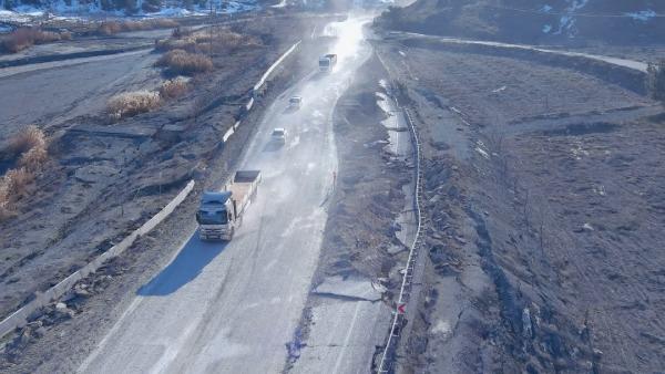 Şu an trafiğin kontrollü şekilde sağlandığı yol, havadan da görüntülendi.