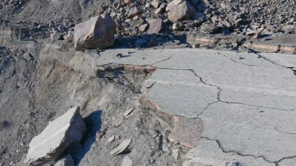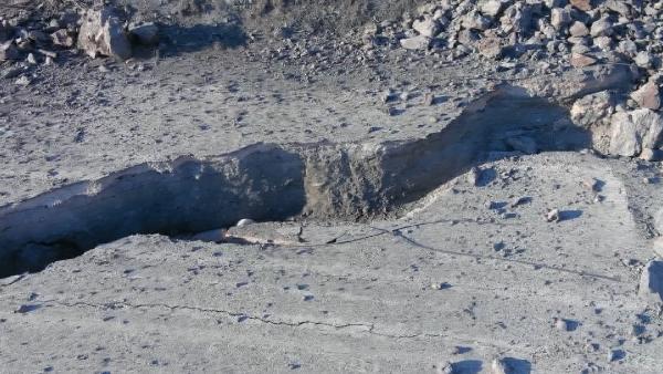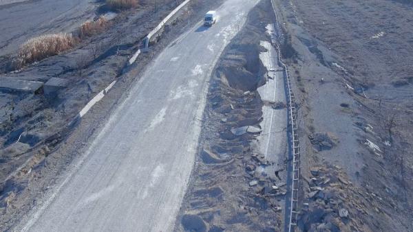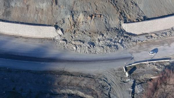 Yol boyu yarıkların olduğu yolda, çökme de meydana geldi.