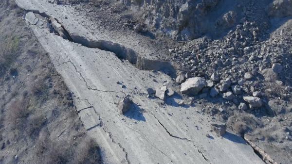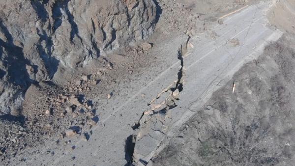 Kahramanmaraş-Malatya yolu üzerinde meydana gelen tahribat 4 şeritli yolun 2 şeride düşmesine neden oldu.