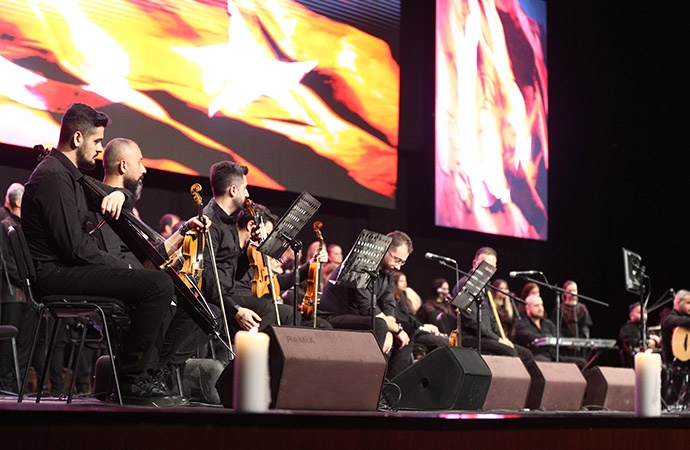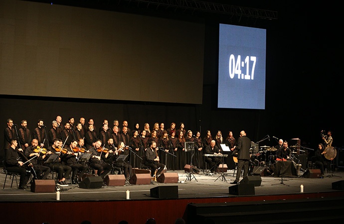 Yılmaz Özfırat'ın yönettiği Antakya Medeniyetler Korosu, Kahramanmaraş merkezli depremlerde yaşamını yitiren 7 üyesi anısına sahnede 7 mum yaktı.