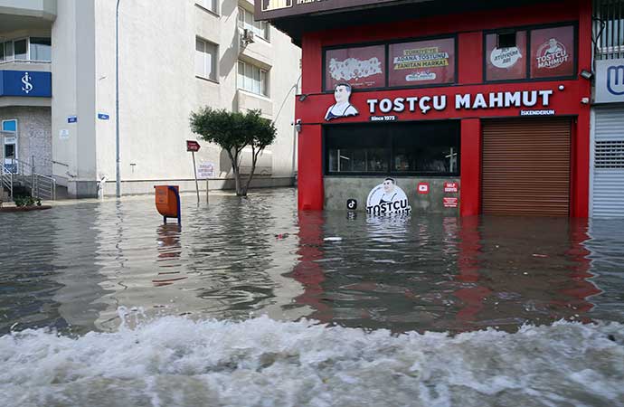 Kahramanmaraş merkezli depremlerden etkilenen İskenderun ilçesinde, sabah saatlerinde başlayan sağanak yaşamı olumsuz etkiledi. Sağanak nedeniyle bazı caddelerde su birikintileri oluştu, rögarlar taştı.