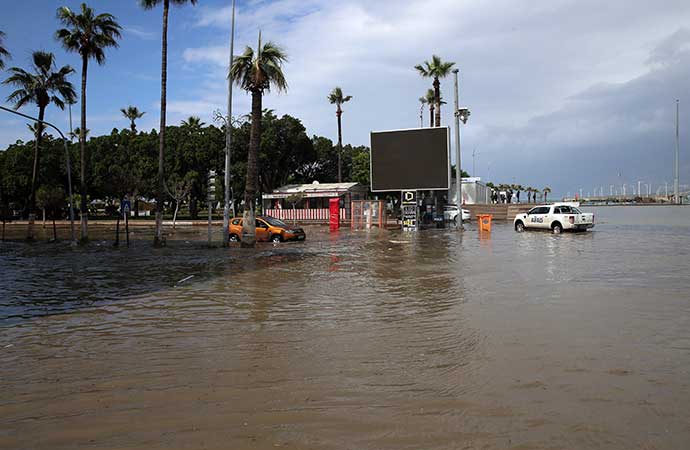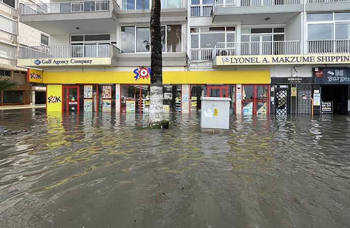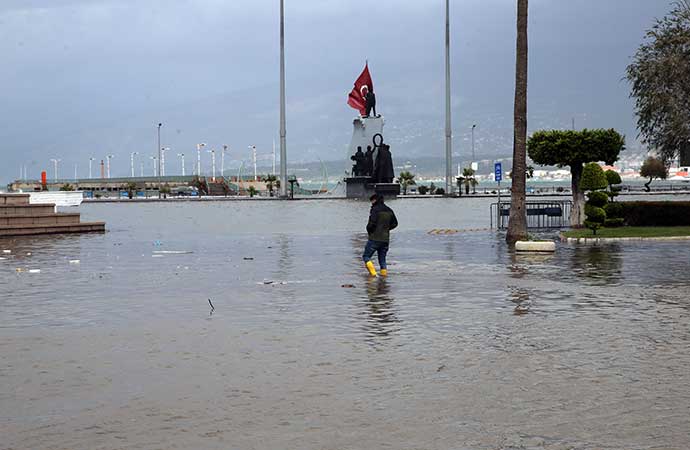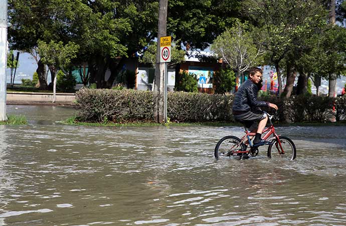 Yağış ve lodos nedeniyle deniz seviyesinin yükselmesi sonucu sahil kısmındaki Anıt Meydanı ile Atatürk Bulvarı`nda oluşan su birikintileri nedeniyle sürücüler trafikte ilerlemekte güçlük çekti.