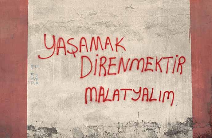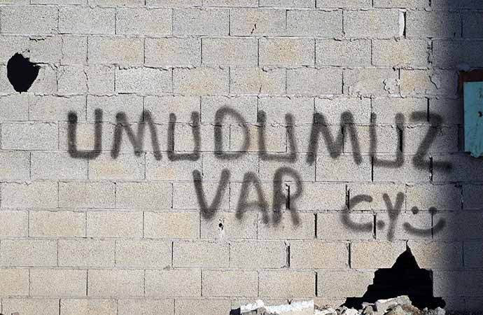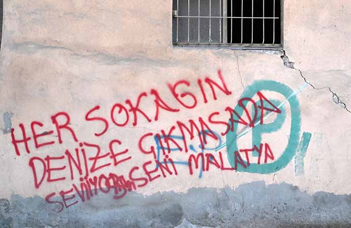 Depremin büyük yıkıma yol açtığı Malatya'da depremzedeler sevgi ve umutlarını duvar yazılarına aktardı