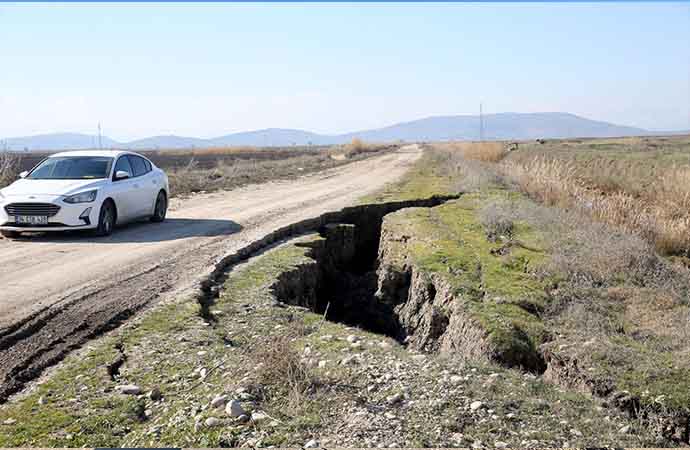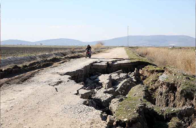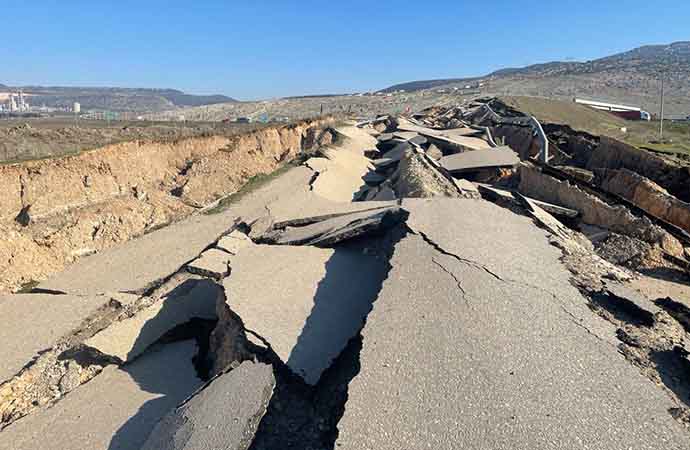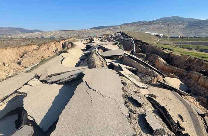 Depremin yollarda bıraktığı izleri dron ile görüntüledi.