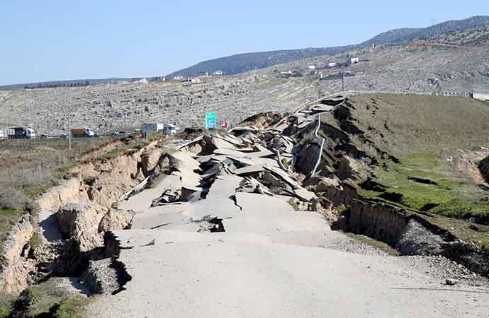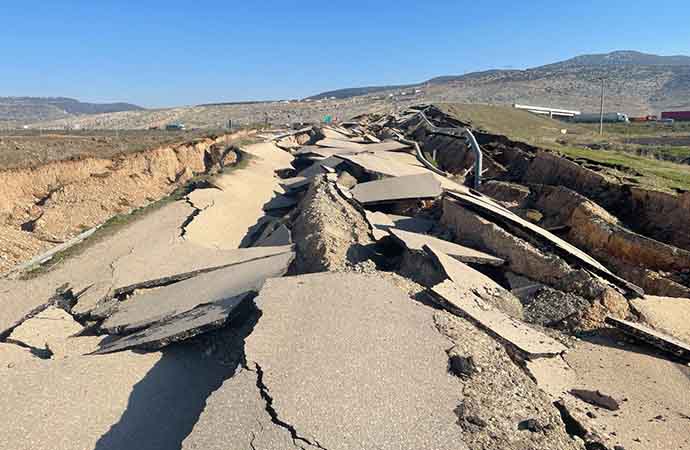 Pazarcık merkezli 7,7 büyüklüğündeki deprem sırasında Çöçelli ve Evri mahalleleri arasında bağlantıyı sağlayan yol tamamen çöktü.