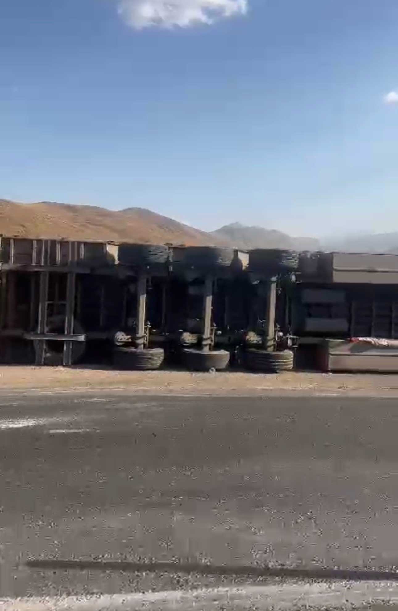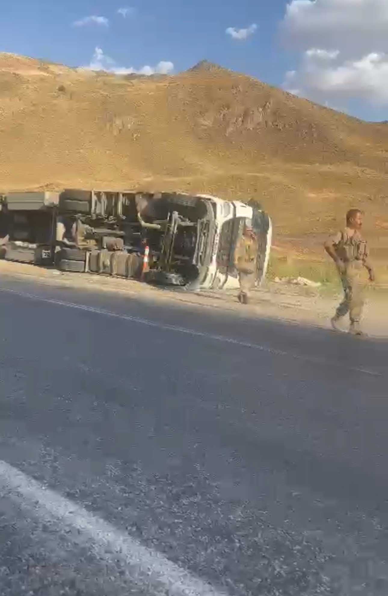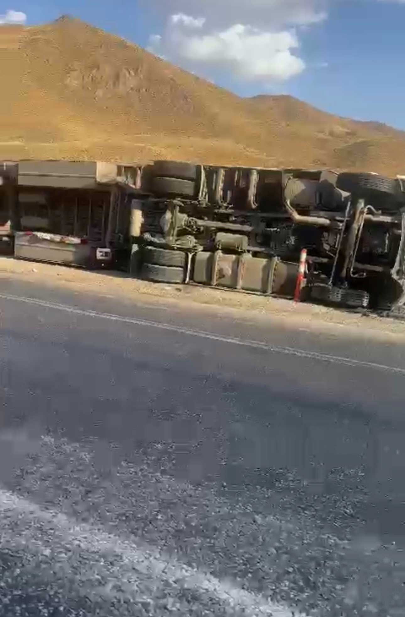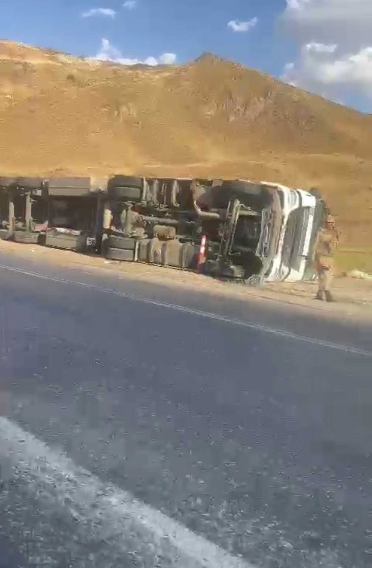 . Yüksekova istikametine seyir halinde olan ve sürücüsünün direksiyon hakimiyetini kaybetmesi sonucu yoldan çıkan tır devrildi.