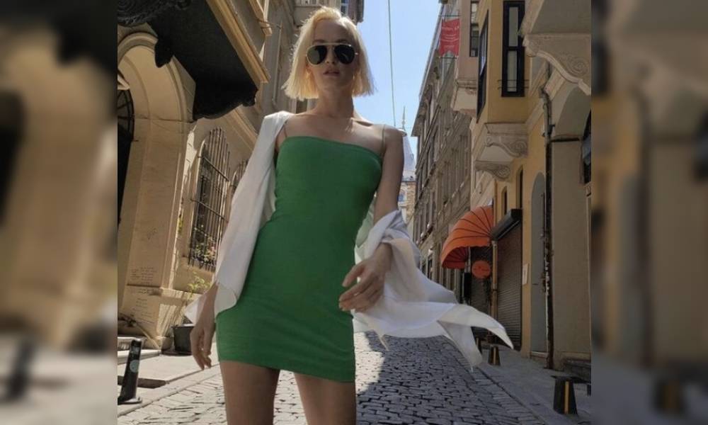 Galata'da objektiflere takılan Soydan, yeşil renk mini elbisesi ve havalı tarzıyla dikkat çekti. Soydan, 'sütyen' akımı başlatan kadınlara katıldı.