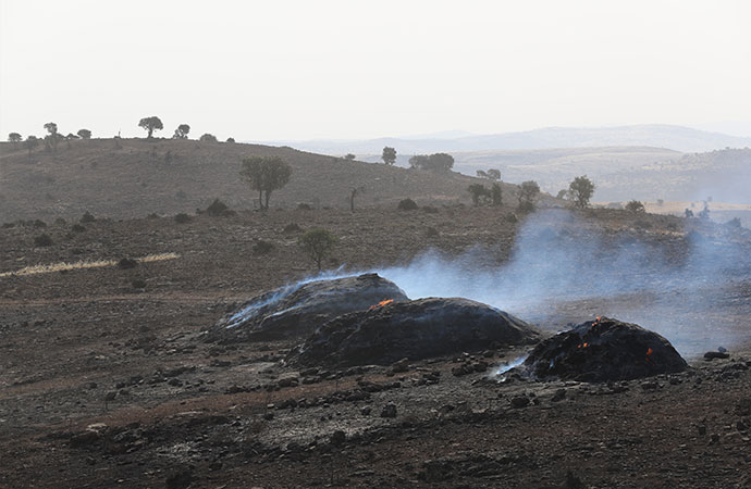 Diyarbakır Çınar ile Mardin’in Mazıdağı ilçeleri arasında yangın çıktı. Yangın, rüzgarın etkisiyle büyüdü. Yangına müdahale için Diyarbakır ve Mardin’in yanı sıra çevre illerden AFAD, Orman İşletme Müdürlüğü ve itfaiye ile 112 Acil Sağlık ekipleri sevk edildi. İçişleri Bakanı Ali Yerlikaya da sosyal medya hesabından yaptığı açıklamada, yangının kontrol altına alındığını duyurdu. Yerlikaya, ekiplerin bölgedeki soğutma çalışmalarının da devam ettiğini belirtti.