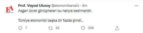 Ekonomist Veysel Ulusoy sosyal medya hesabından yaptığı paylaşımda, "Asgari ücret görüşmeleri bu haliyle kesilmelidir. Türkiye ekonomisi başka bir fazda şimdi..." diye yazdı. Ekonomistlerin görüşleri şöyle...