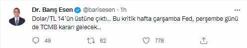 Dolar yeni haftaya 13.95'li zirvesini yenileyerek başladı. Sabah saatlerinde yükselişe geçen dolar 14 lirayı aşarak 14.47 seviyesine kadar yükseldi. Aynı dakikalarda euro da 16 lirayı aşarak 16.65 seviyesine kadar yükselerek rekor kırdı.