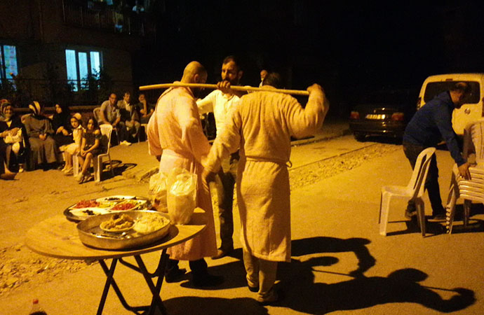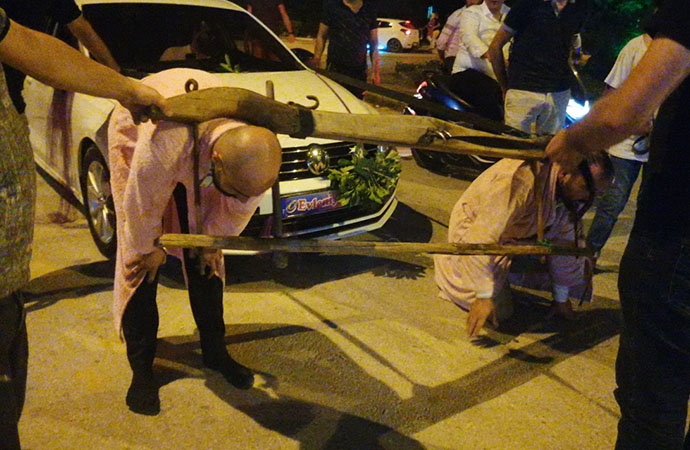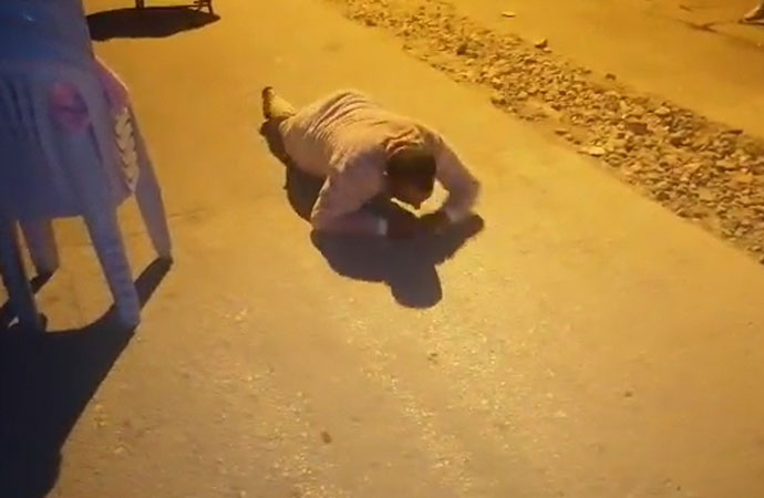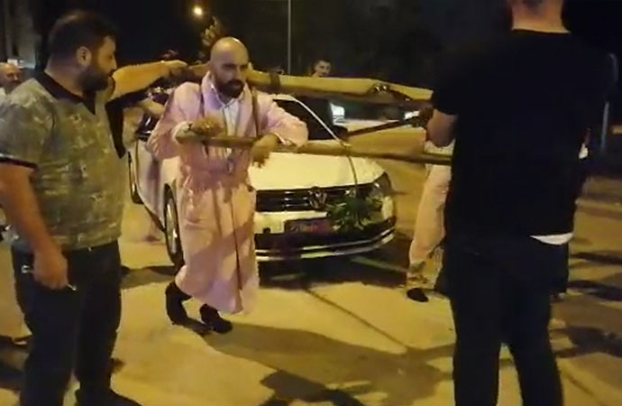 Gelenek gereği önce şınav çektirilen, daha sonra da yerde süründürülen damada, boyunduruk takıldı. Kırbaçlar vurulan Baştürk, 2 ton ağırlığındaki aracı, boyundurukla zorlukla çekti.
