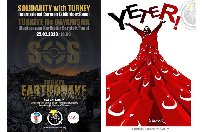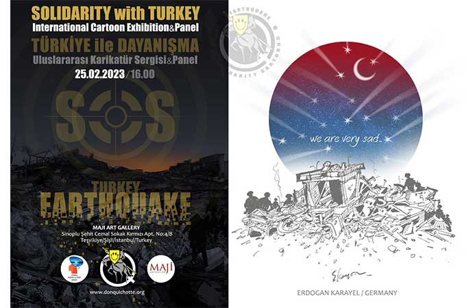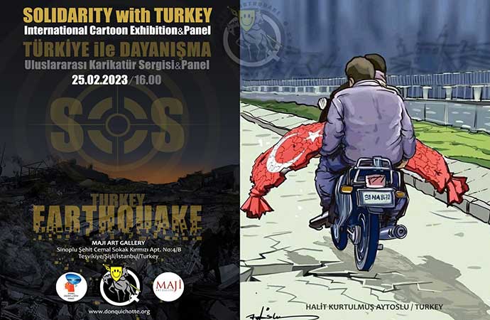 Uluslararası "Türkiye ile Dayanışma" Karikatür Sergisi 2 Mart 2023 tarihine kadar Nişantaşı Maji Sanat Galerisi'nde ziyaret edilebilecek.