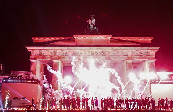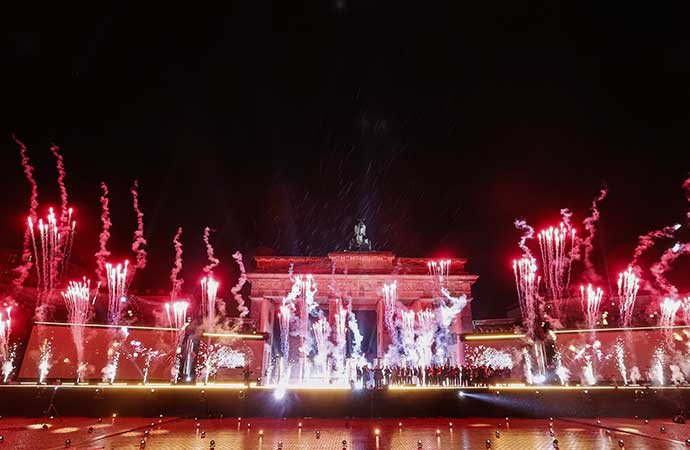 Berlin'in simgelerinden Brandenburg Kapısı önünde her yıl 100 binden fazla kişinin katıldığı havai fişekli yeni yıl kutlamaları Kovid-19 kısıtlamaları nedeniyle üst üste ikinci yıl yapılamadı. Brandenburg Kapısı önünde sadece Alman kamu yayıncısı ZDF tarafından yayınlanan konser düzenlendi. Çok sayıda sanatçının sahne aldığı konser televizyondan canlı olarak yayınlandı. Alanın çevresinde insanların toplanmaması için tel örgüler yerleştirildi ve polis geniş güvenlik önlemi aldı.