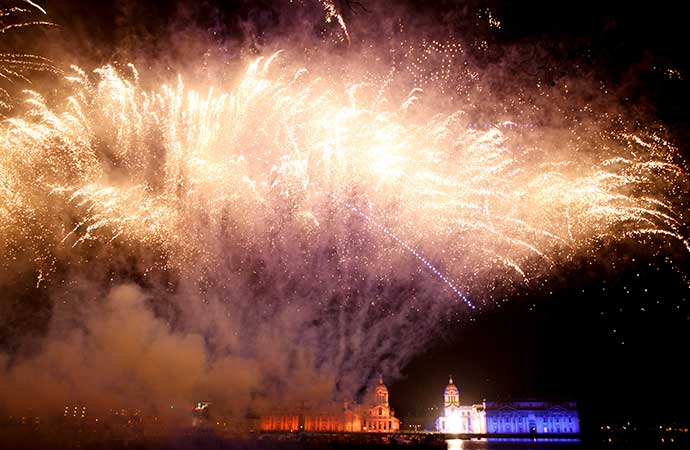 İngiltere’de yeni yıl kutlamaları kapsamında havai fişek ve ışık gösterileri yapıldı. Londra'daki 'Old Royal Naval College' binası ışıklandırıldı.