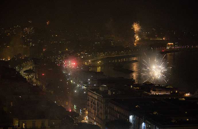 İtalya'nın Napoli kentinde yeni yıl kutlamaları kapsamında, belediye tarafından yasaklanmasına rağmen kentin çeşitli noktalarında havai fişek gösterileri yapıldı.