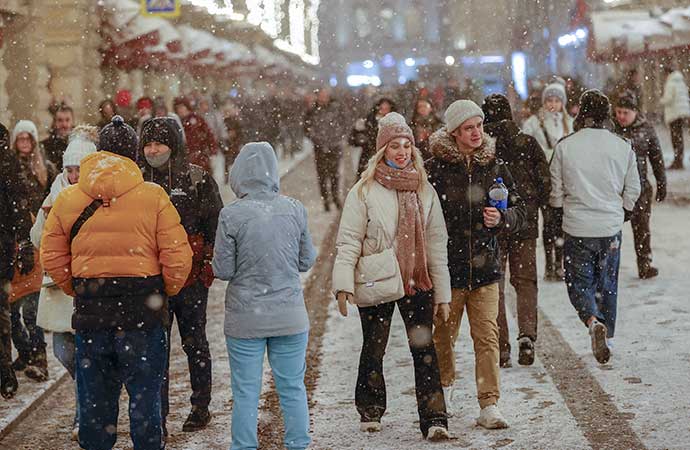 Rusya'da yeni yıl yoğun soğuk hava ve koronavirüs önlemleri eşliğinde geçti.