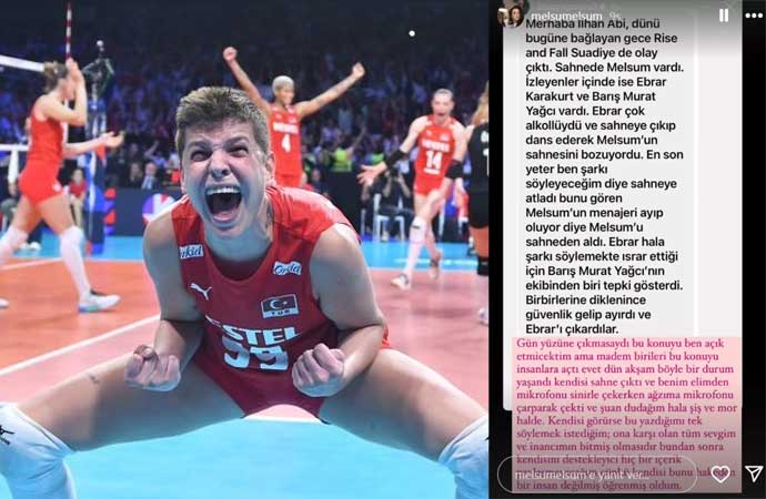Ünlü şarkıcı Melsum Erdost, sosyal medya hesabından açıklama yaparak Ebrar Karakurt'un gece kulübünde olay çıkardığını öne sürdü. Paylaşılan bir mesajı alıntılayan Erdost, "Evet bu olay doğru" dedi.