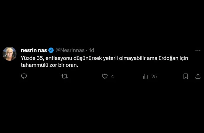 Nesrin Nas: Yüzde 35, enflasyonu düşünürsek yeterli olmayabilir ama Erdoğan için tahammülü zor bir oran.
