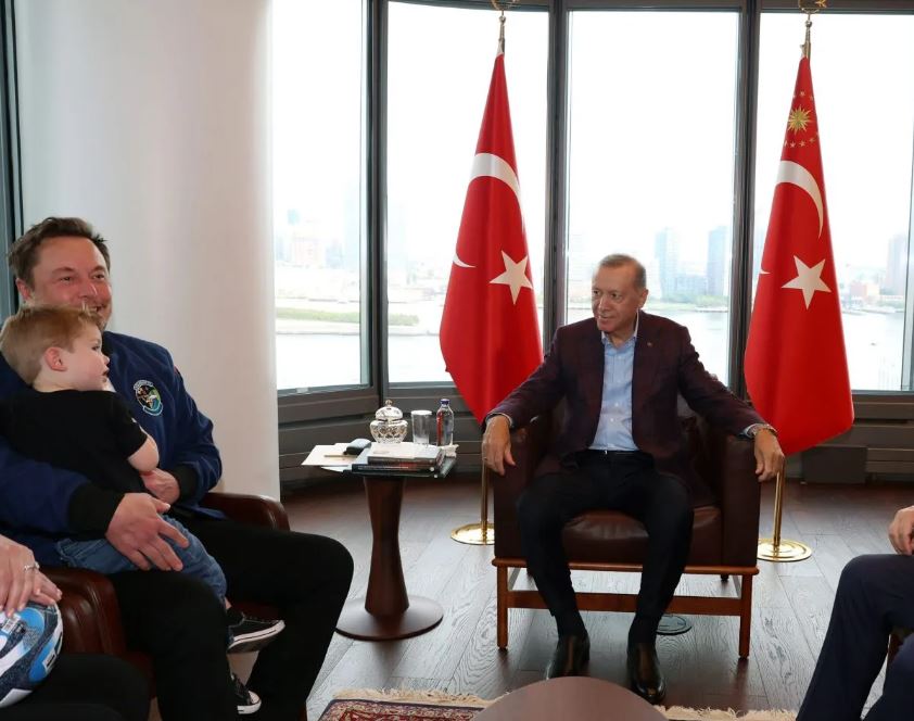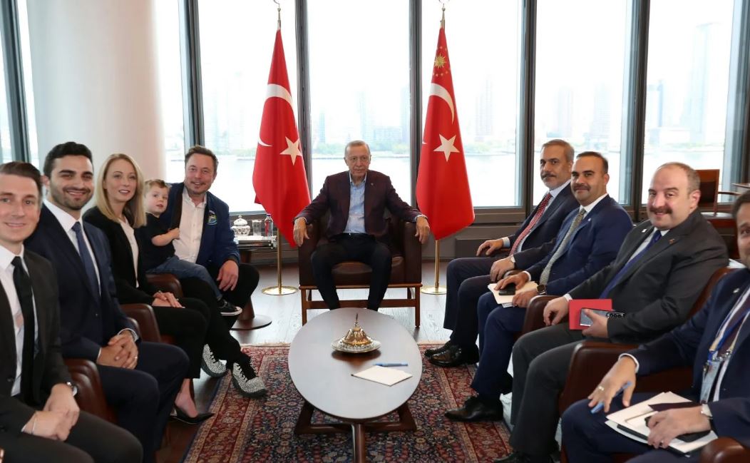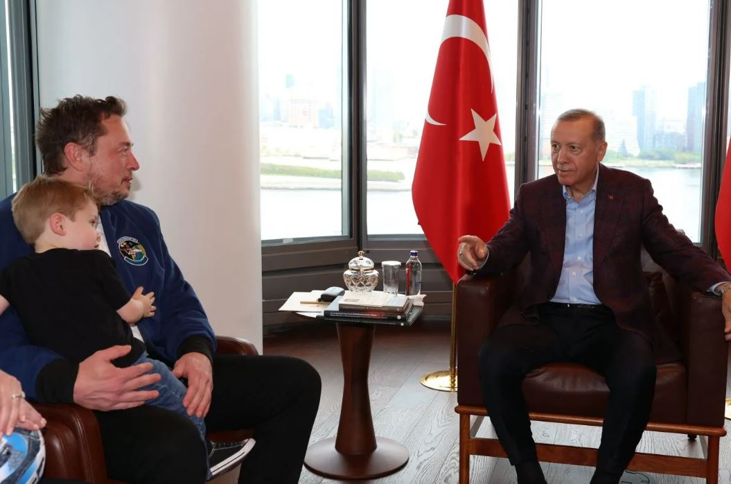 Erdoğan burada, Elon Musk'ı kabul etti. Musk, kucağında kabule oğluyla geldi.