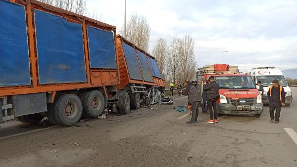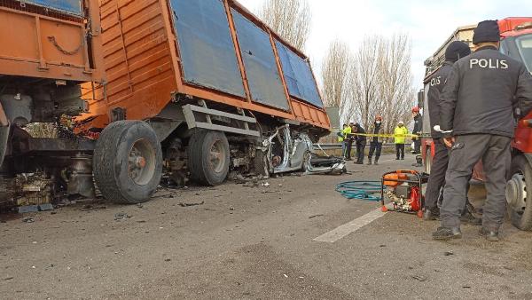 TIR'ın altına giren otomobil, hurdaya dönerken, sürücü M.V.Y. ise sıkıştı.