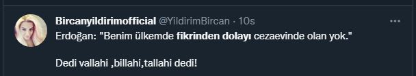 “Benim ülkemde cezai bir durum olmadıkça gazeteci kalemşor fikir cezaevlerinde olanlar yok. hepsi bunların sadece dezenformasyon. bunları da biz yutmayız”
