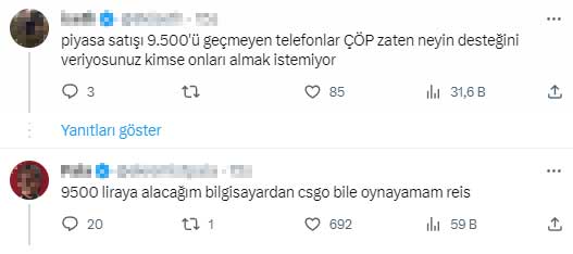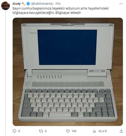 Erdoğan'ın sosyal medya hesabındaki paylaşımına yorum yapan gençler, 9 bin 500 TL bandındaki bilgisayar ve telefonların 'eski ve yetersiz' olacağını söyledi. Öğrenciler vaat edilenden farklı bir destek ile karşı karşıya kalınca, esprili paylaşımlar yaparak Erdoğan'ı ve AKP'yi eleştirdi.