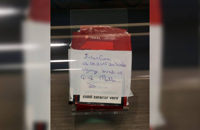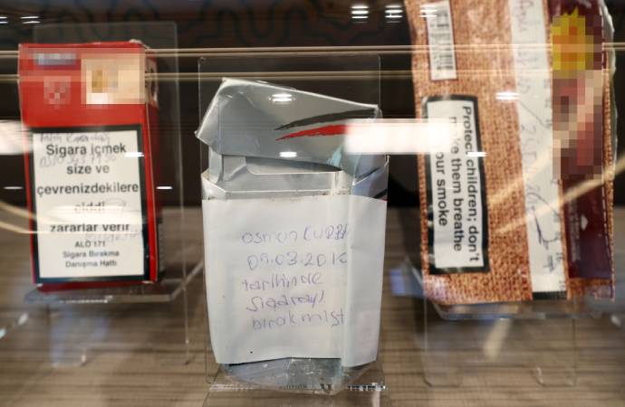 Yurt içi ve yurt dışı gezilerinde, uluslararası toplantılarda, kabullerinde sigara içenlerin paketlerini alarak, onlara tütün alışkanlığını bırakma sözü verdiren Erdoğan'ın, bu yöntemle yıllardır topladığı paketlerden 215'i, Cumhurbaşkanlığı Külliyesi Beştepe Sergi Salonu'nda sergileniyor.