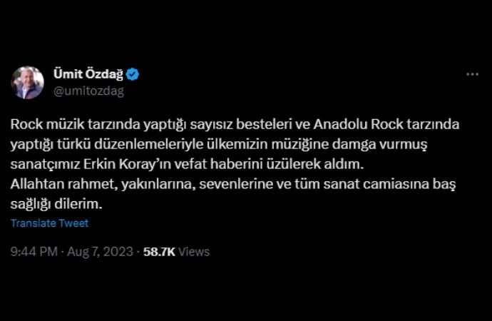 Erkin Koray Türkiye'yi yasa boğdu! Siyasiler, ünlüler ve vatandaşlardan peş peşe mesajlar