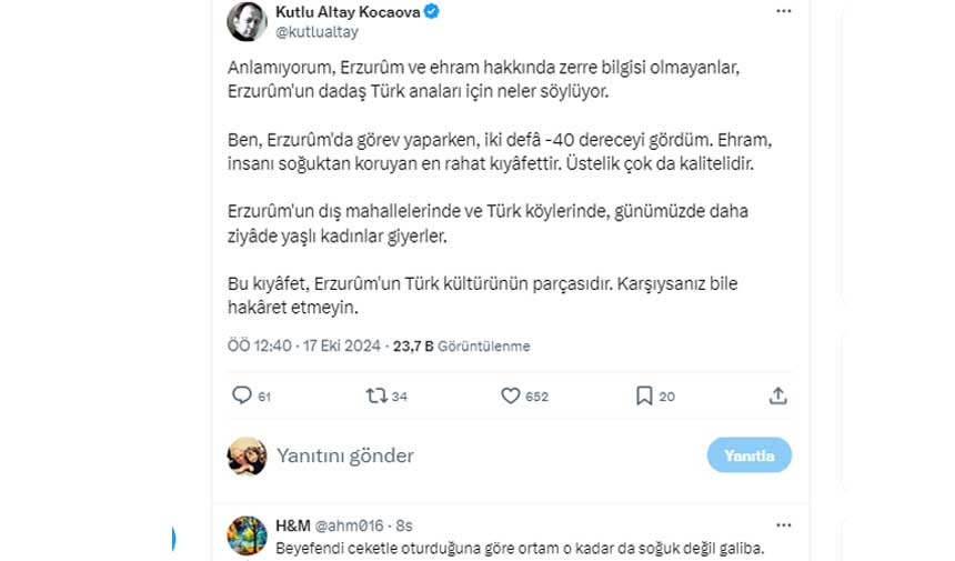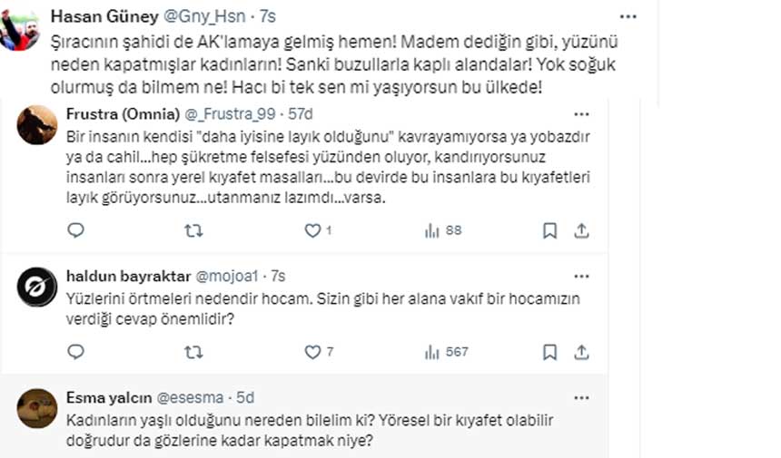 Kimi sosyal medya hesapları da, Tarım müdürünün ceketle oturmasına dikkat çekerek, soğuk olmadığını ve kadınların yüzlerini dahi kapatmasının giysiyle ilgisi olmadığını öne sürdü.