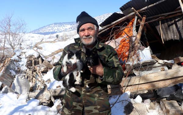 Eşini toprağa verdikten sonra kedilerinin enkaz altında kaldığını fark eden İzzettin Parlak, çalışma başlattı.