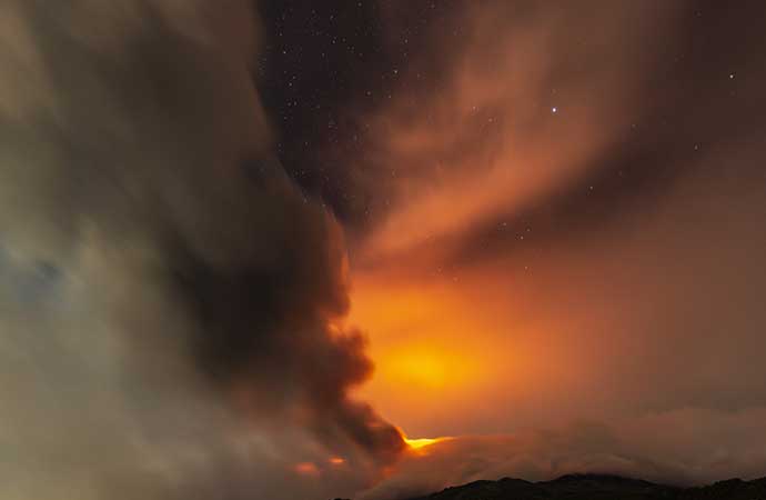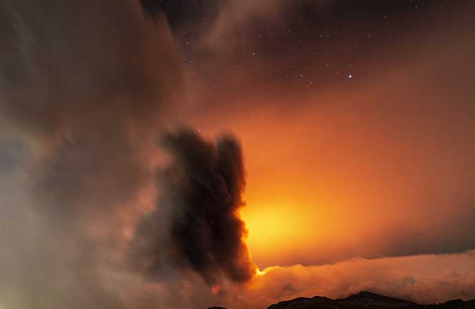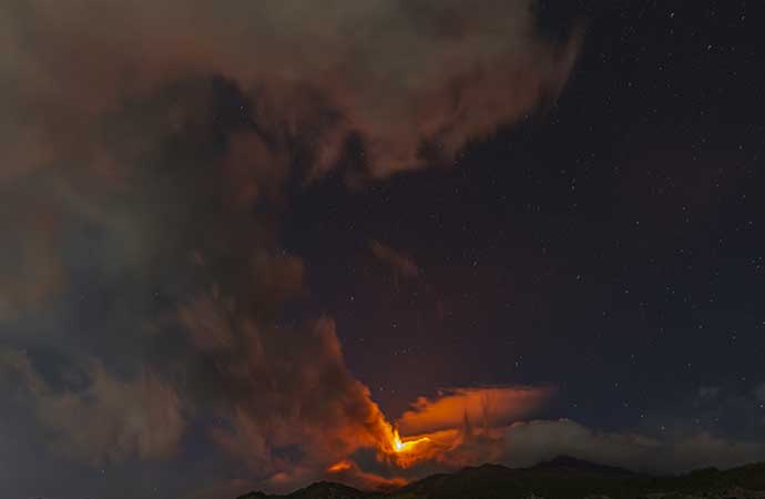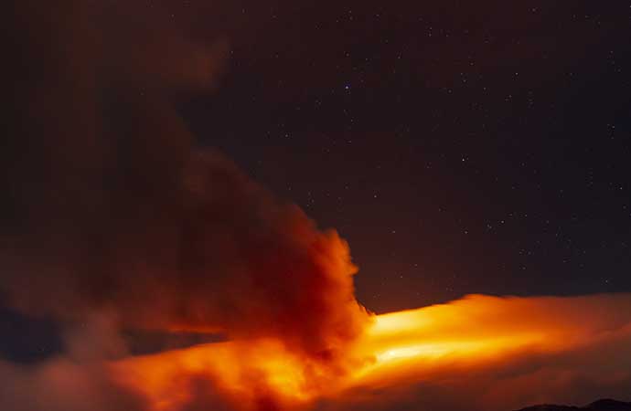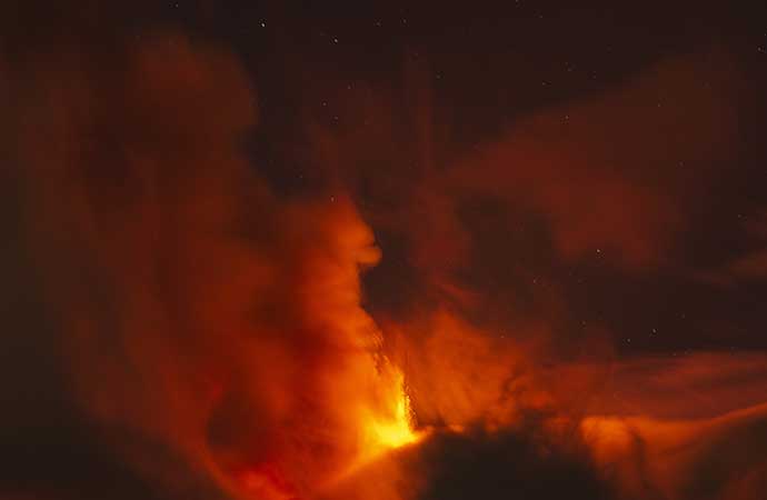 İtalya Ulusal Jeofizik ve Volkanoloji Enstitüsü (INGV) Katanya şubesinin açıklamasında, Etna'nın güneydoğusundaki kraterden güçlü bir lav akışı olduğu ve yanardağın püskürttüğü küllerin yaklaşık 4 bin 500 metre yüksekliğe ulaştığı belirtildi.