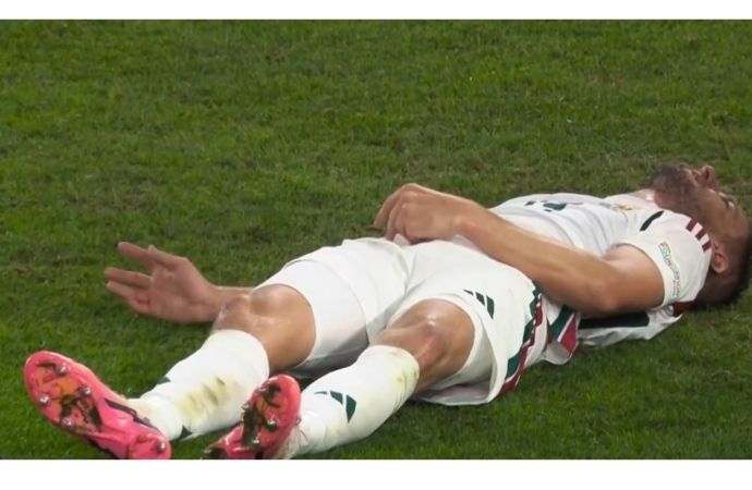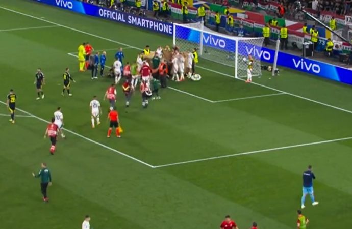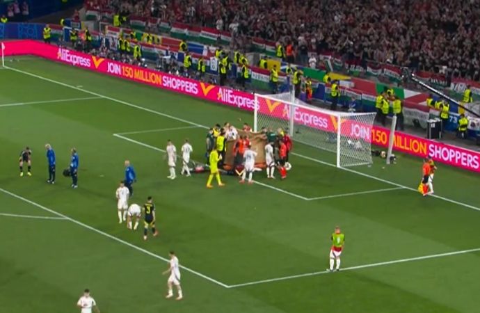 Macar futbolcular, sağlık görevlilerinin takım arkadaşlarına müdahale ettikleri anların görüntülenmemesi için oyuncunun ve görevlilerin etrafına perde ile set ördü.