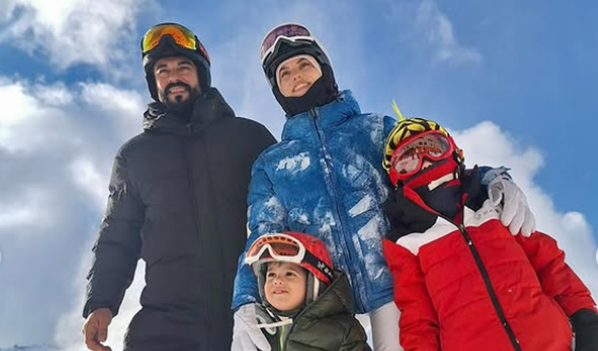 Oyuncu Fahriye Evcen ve Burak Özçivit çifti oğulları Karan ve Kerem ile birlikte Kartalkaya Kayak Merkezi'nde kar tatiline gitti.