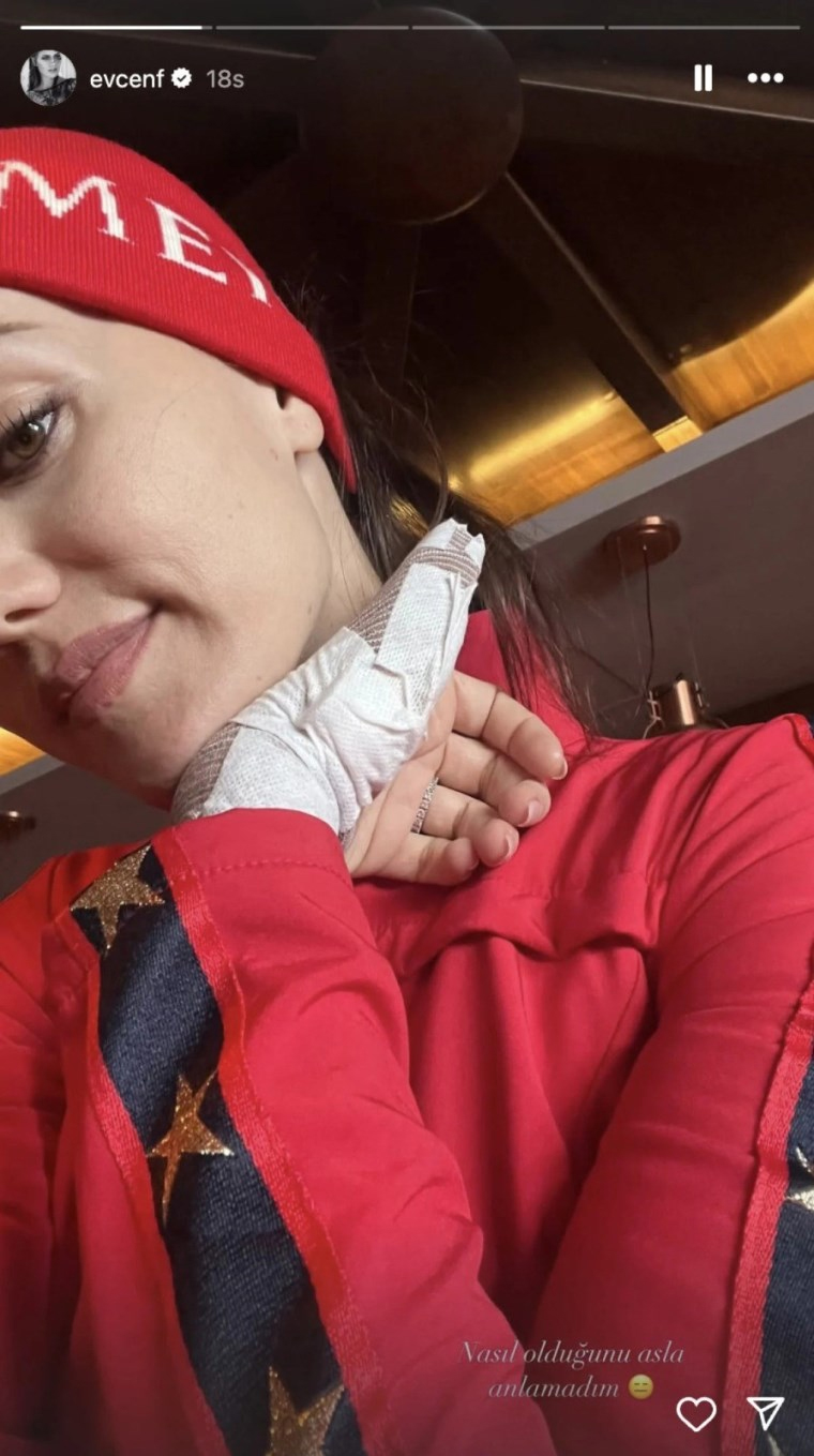 Evcen, tatil sırasında talihsiz bir kaza geçirdiğini de hesabından paylaşarak takipçilerine duyurdu.