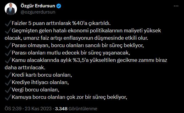 AKP iktidarı 2023 Genel Seçimlerine kadar uyguladığı düşük faiz politikasın seçimlerin ardından rafa kaldırdı. Tüm dünyada yükselirken faizin düşürülmesiyle son iki yılda Türk Lirası değer kaybetti halk fakirleşti, alım gücü düştü. AKP'nin genel seçimlerden sonra fikri değişti şimdi de faizi yükseltiyor. AKP'nin faiz politikasına sosyal medyada büyük tepki gösterildi. Tepki gösteren isimlerin ortak fikri Nas'ın rafa kalktığı