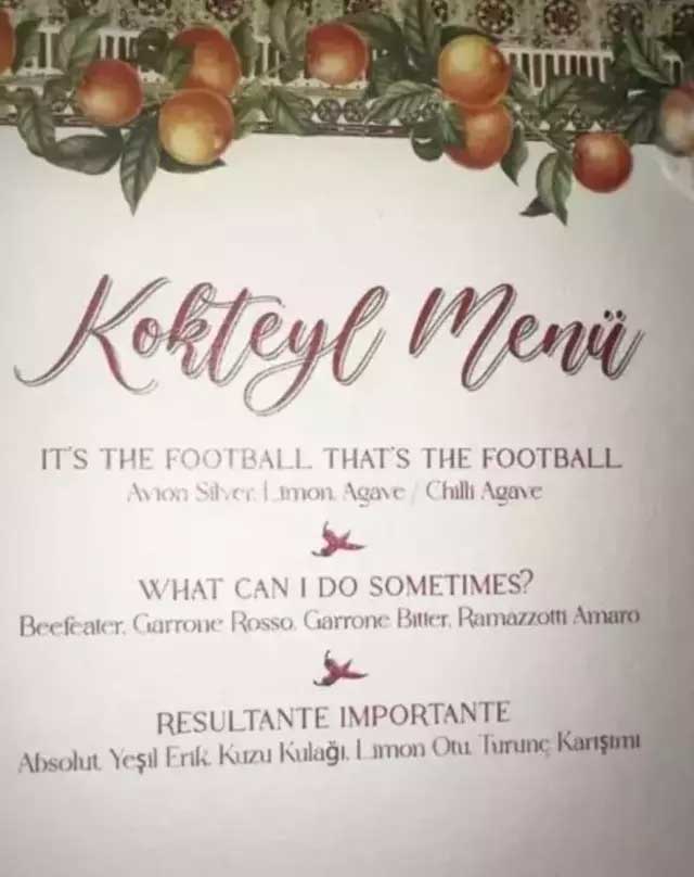 Spor ve sanat dünyasından ünlü isimlerin katıldığı partiye Terim Şampiyonlar Ligi müziği eşliğinde gelirken, yemek menüsündeki ayrıntı dikkat çekti.
