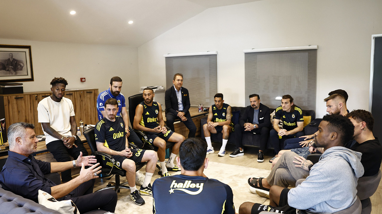Süper Lig'de hafta sonu oynanacak olan Antalyaspor maçının hazırlıklarını Samandıra Can Bartu Tesisleri'nde sürdüren Fenerbahçe'de Başkan Sadettin Saran ve Yönetim Kurulu Üyesi Ertan Torunoğulları takımla bir araya geldi.