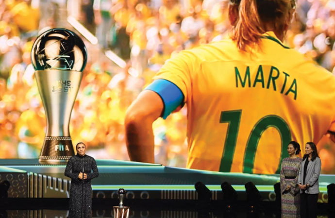 Brezilyalı 37 yaşındaki kadın futbolcu Marta Vieira da Silva ya da bilinen kısa adıyla Marta, FIFA Özel Ödülü'nün sahibi oldu. Saha içi ve saha dışında bir figür olarak gösterilen Marta'ya, spora 20 yıldan fazla süren hizmetinin ardından ödül verildi.