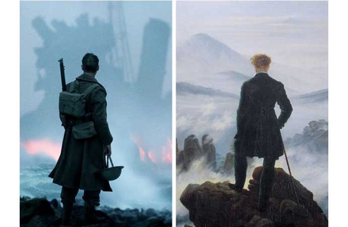Christopher Nolan, yazdığı ve yönettiği 'Drunk' adlı filmdeki sahne, 1818 yılında, Alman romantik ressam Caspar David Friedrich tarafından yapılan Bulutların Üzerinde Yolculuk tablosundan.